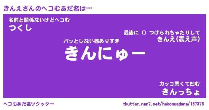 | 意味不明あだ名 | 『ペロリンきんえ』『きんえフォーエバー』 |