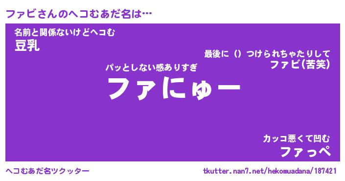 | ポケモン風あだ名 | 『ファチュウ』『ファビダネ』 |