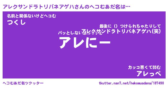 ポケモン風あだ名 | 『アレチュウ』『アレクダネ』 |