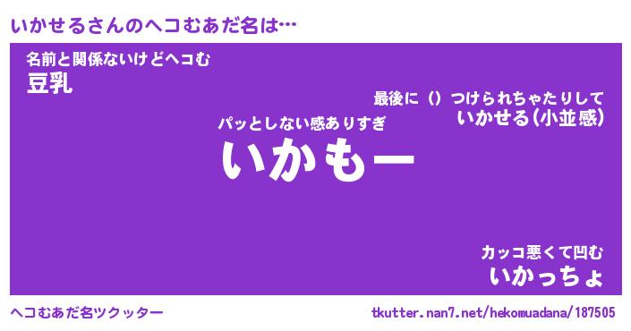| 意味不明あだ名 | 『ペロリンいかせる』『永久保存いかせる』 |