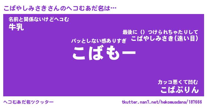 | 2回繰り返すあだ名 | 『こばこば』『ここばば』『くにくに』 |
