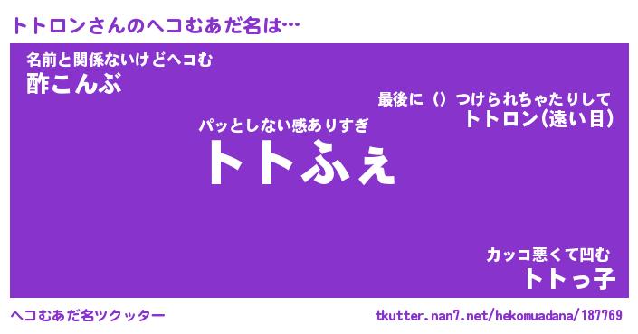 | 意味不明あだ名 | 『ペロリントトロン』『永久保存トトロン』 |