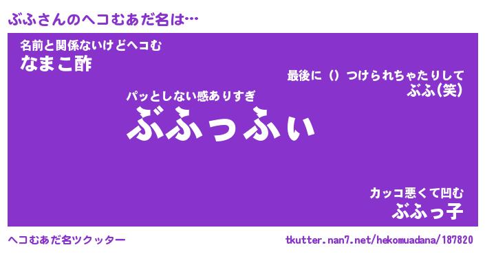 | ポケモン風あだ名 | 『ブフチュウ』『ブフダネ』『ヒブフ』 |