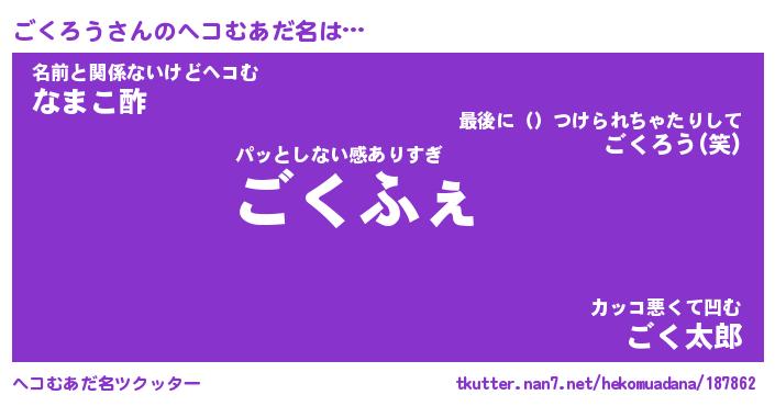 | 2回繰り返すあだ名 | 『ごくごく』『ごごくく』『いじいじ』 |