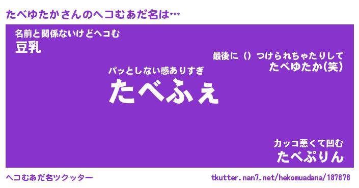 | ファンタジー風あだ名 | 『タベフェル』『エターナルタベユタカー』 |