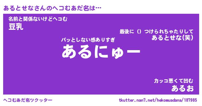 | 恥ずかしいあだ名 | 『プリティーあるとせな』『あるっちょ』 |