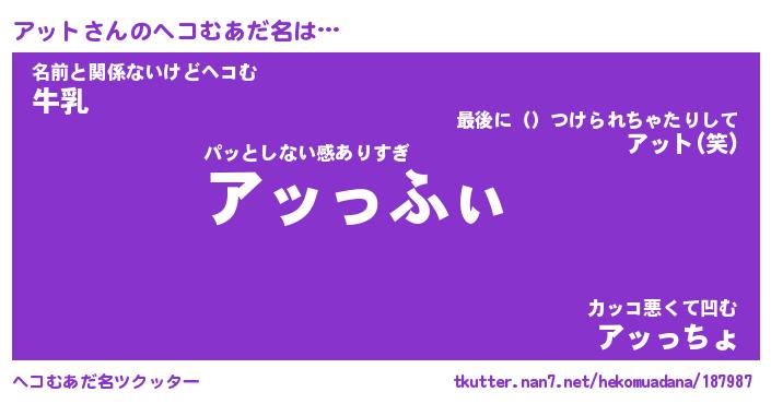 | ヒーロー風カッコイイあだ名 | 『スーパーアット』『ウルトラアットマン』 |