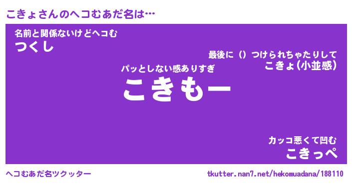 | 意味不明あだ名 | 『ペロリンこきょ』『こきょフォーエバー』 |