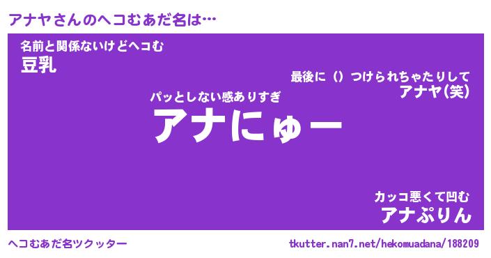 | ファンタジー風あだ名 | 『アナフェル』『エターナルアナヤー』 |