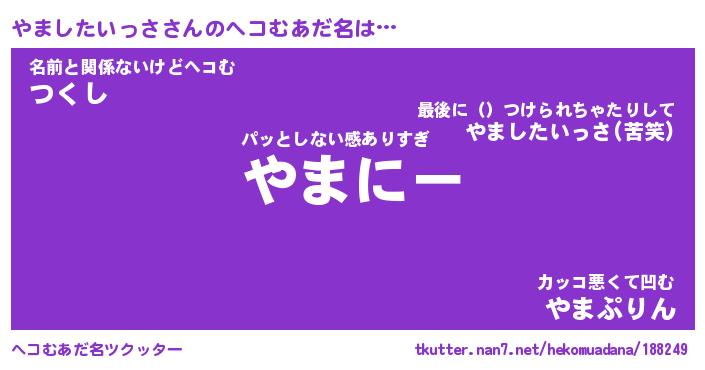 | 欧米人風あだ名 | 『マイケルやましたいっさ』 |