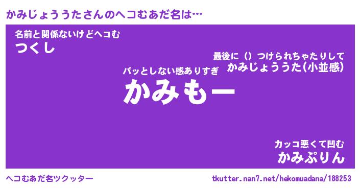 | ヒーロー風カッコイイあだ名 | 『スーパーカミジョウウタ』 |