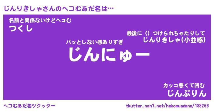 | 恥ずかしいあだ名 | 『プリティーじんりきしゃ』『じんっちょ』 |