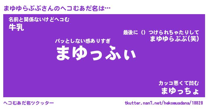 | ヒーロー風カッコイイあだ名 | 『スーパーマユユラブブ』『炎刃騎士マユ』 |