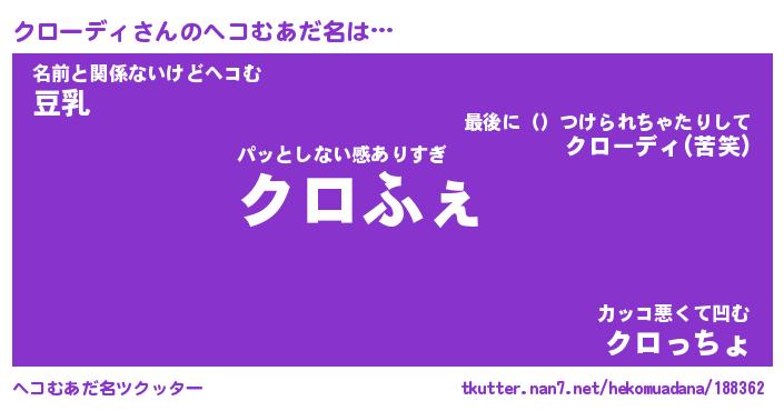 | ファンタジー風あだ名 | 『クロフェル』『エターナルクローディー』 |