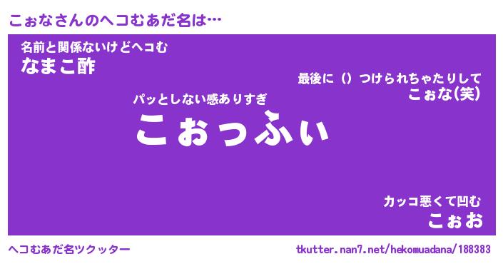 | 胡散臭い通販商品みたいなあだ名 | 『モテモテ間違いなし霊験あらたかなお札…その名も「こぉな」』 |