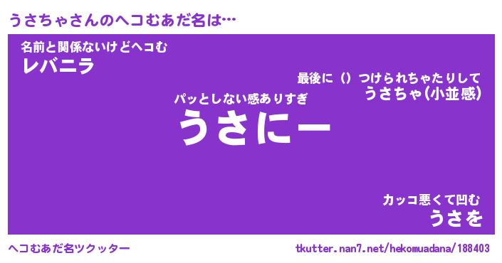 | ヒーロー風カッコイイあだ名 | 『スーパーウサチャ』『銀牙騎士ウサ』 |