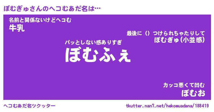 | 2回繰り返すあだ名 | 『ぼむぼむ』『ぼぼむむ』『ぬらぬら』 |