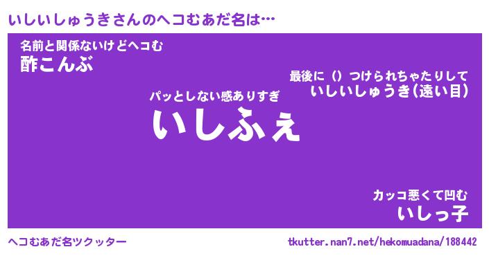 | 男性向けラノベタイトル風あだ名 | 『いしいしゅうきの憂鬱』 |