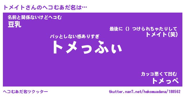 | ファンタジー風あだ名 | 『トメフェル』『エターナルトメイトー』 |