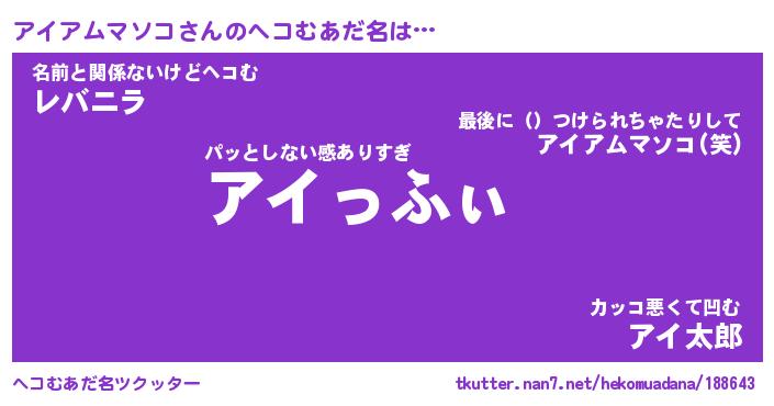| 欧米人風あだ名 | 『マイケルアイアムマソコ』 |
