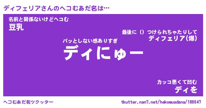 | 男性向けラノベタイトル風あだ名 | 『ディフェリアの憂鬱』 |