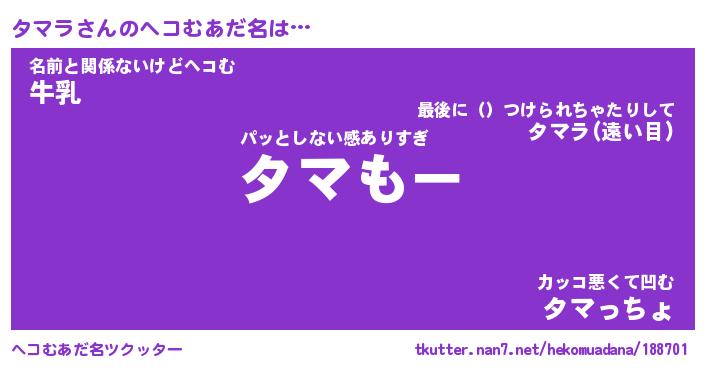| ファンタジー風あだ名 | 『タマフェル』『エターナルタマラー』 |