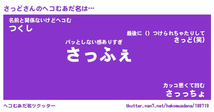 | 意味不明あだ名 | 『ペロリンさっど』『さっどフォーエバー』 |