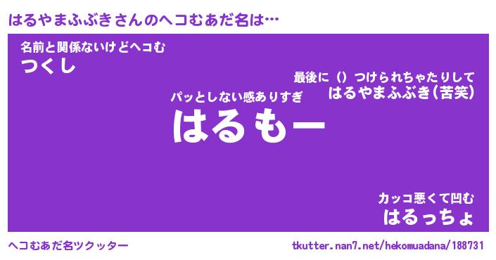 | ヒーロー風カッコイイあだ名 | 『スーパーハルヤマフブキ』 |