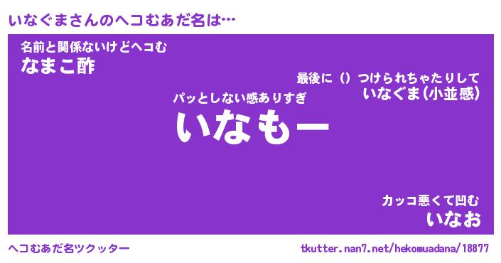 | 欧米人風あだ名 | 『マイケルいなぐま』『ウサインいなぐま』 |