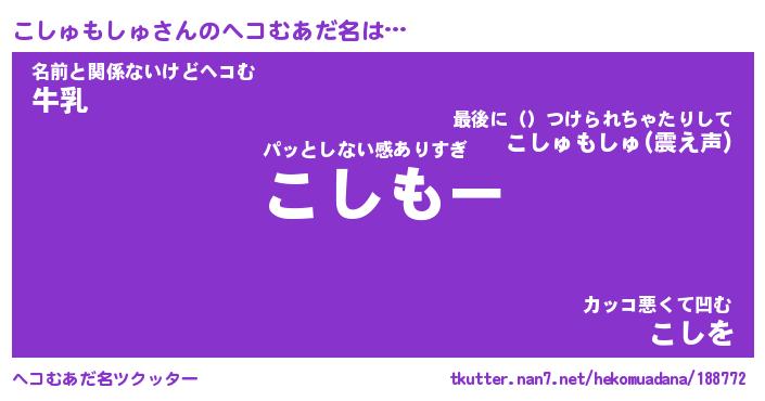 | 男性向けラノベタイトル風あだ名 | 『こしゅもしゅの憂鬱』 |