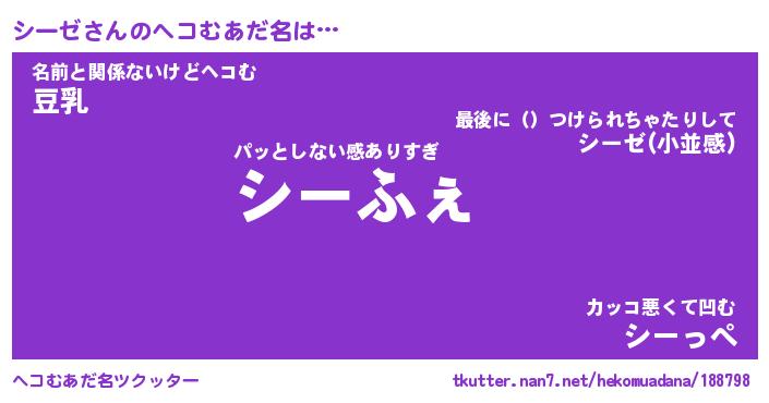 | ポケモン風あだ名 | 『シーチュウ』『シーゼダネ』 |