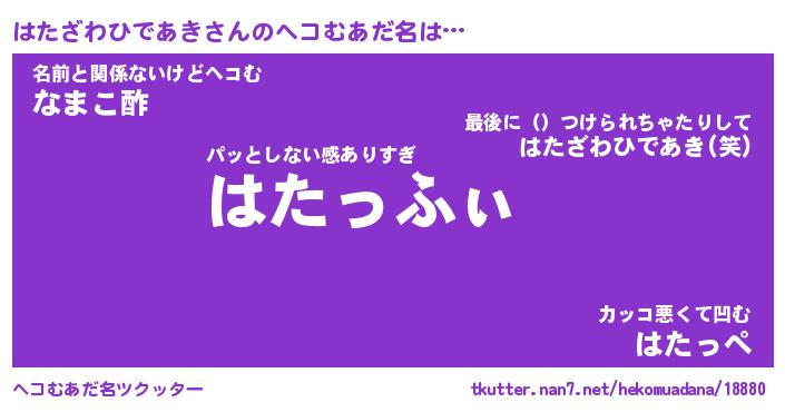| 胡散臭い通販商品みたいなあだ名 | 『必ず成功する霊験あらたかなお札…その名も「はたざわひであき」』 |
