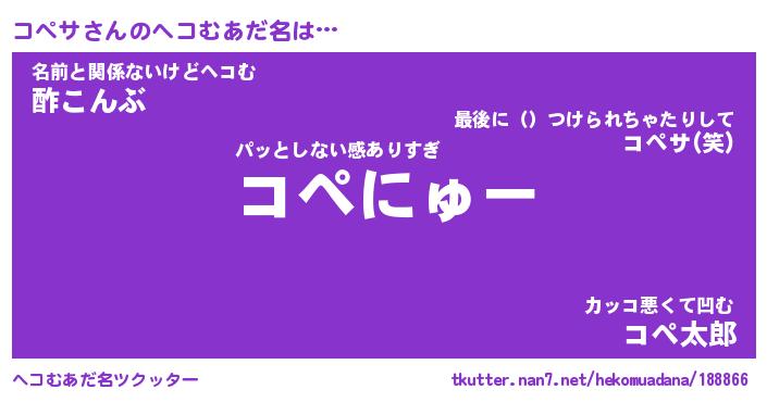 | ファンタジー風あだ名 | 『コペフェル』『エターナルコペサー』 |