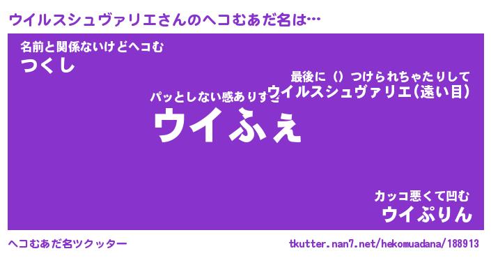 | ポケモン風あだ名 | 『ウイチュウ』『ウイルダネ』 |