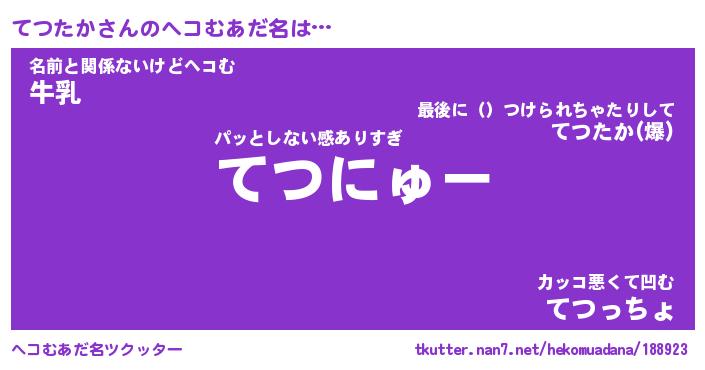 | 意味不明あだ名 | 『ペロリンてつたか』『永久保存てつたか』 |