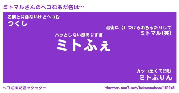 | ファンタジー風あだ名 | 『ミトフェル』『エターナルミトマルー』 |