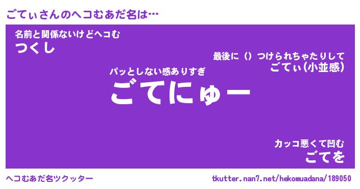 | 意味不明あだ名 | 『ペロリンごてぃ』『ごてぃフォーエバー』 |
