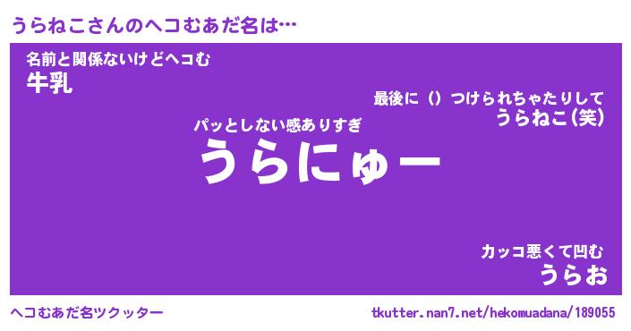 | 意味不明あだ名 | 『ペロリンうらねこ』『永久保存うらねこ』 |