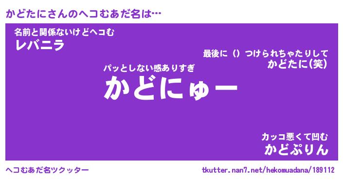 | ヒーロー風カッコイイあだ名 | 『スーパーカドタニ』『天弓騎士カド』 |