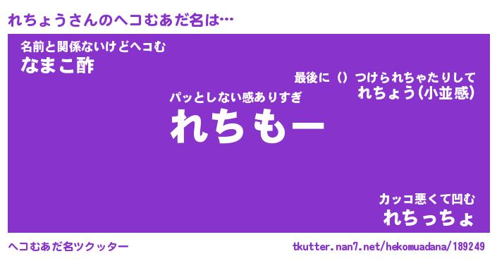 | 2回繰り返すあだ名 | 『れちれち』『れれちち』『うずうず』 |