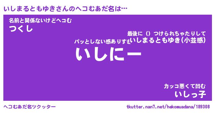 | ポケモン風あだ名 | 『イシチュウ』『イシマダネ』 |