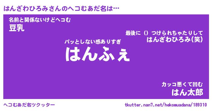 | 胡散臭い通販商品みたいなあだ名 | 『モテモテ間違いなし水晶球…その名も「はんざわひろみ」』 |