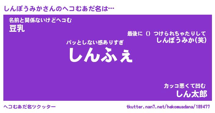 | 男性向けラノベタイトル風あだ名 | 『しんぽうみかの憂鬱』 |