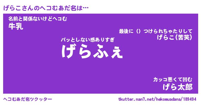 | 意味不明あだ名 | 『ペロリンげらこ』『げらこフォーエバー』 |