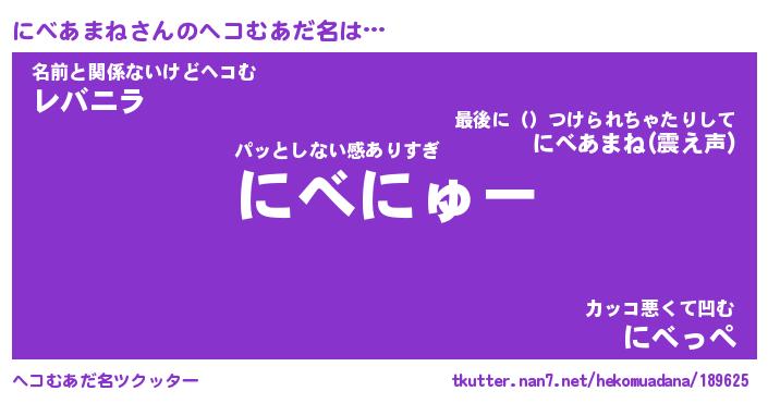 | 2回繰り返すあだ名 | 『にべにべ』『ににべべ』『ねちねち』 |