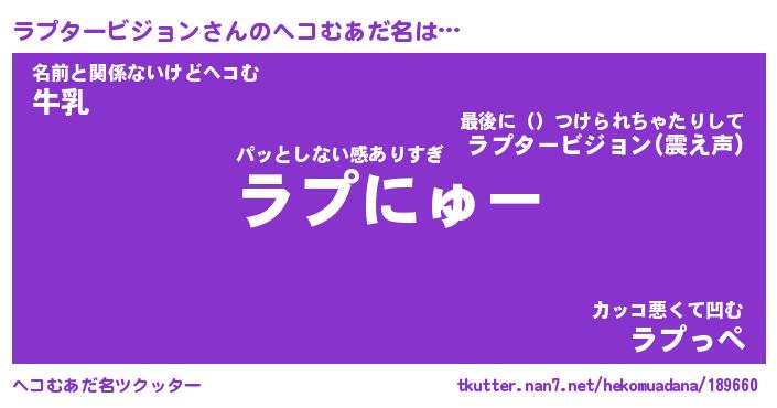 | ポケモン風あだ名 | 『ラプチュウ』『ラプタダネ』 |