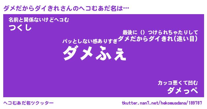 | ヒーロー風カッコイイあだ名 | 『スーパーダメダカラダイキレ』 |