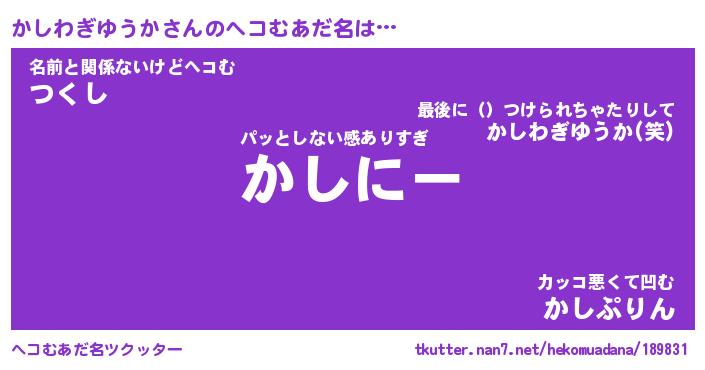 | 恥ずかしいあだ名 | 『プリティーかしわぎゆうか』『かしちん』 |