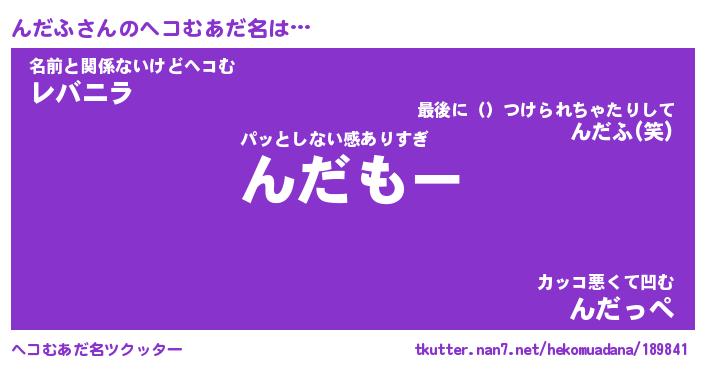 | ファンタジー風あだ名 | 『ンダフェル』『エターナルンダフー』 |