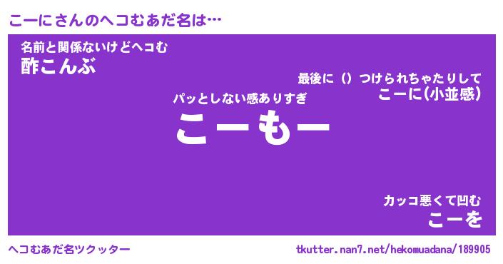 | 意味不明あだ名 | 『ペロリンこーに』『こーにフォーエバー』 |